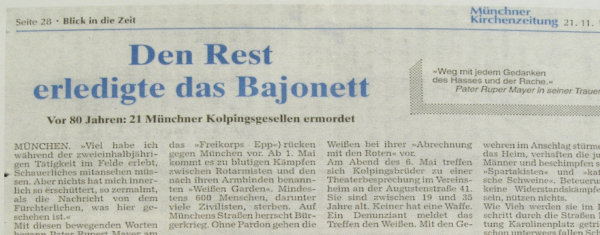 So zitierte 1999 die Münchner Kirchenzeitung aus der Trauerrede von Pater Rupert Mayer, welche er im Jahre 1919 am Grab der 21 ermordeten Kolpingbrüder gehalten hat.