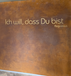 Betritt man die Augustinerkirche in Würzburg, fällt der Blick auf eine goldene Tafel mit der Aufschrift: „Ich will, dass Du bist!“ Dieser Satz greift einen Gedanken des heiligen Augustinus auf.