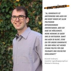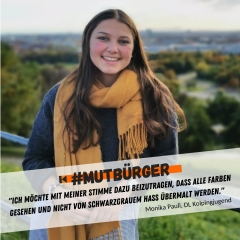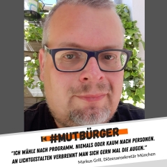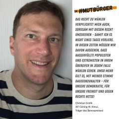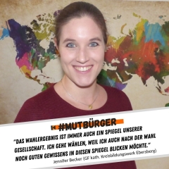 Ich bin #mutbürger, weil Hass und Intoleranz keine Meinung sind, sondern unser tolles Land zerstören. Ich bin #mutbürger, weil die Würde des Menschen unantastbar ist. Ich bin #mutbürger, gehe wählen und unterstütze dabei weder Populisten noch Extremisten, damit nicht das verloren geht, was sich unsere Gesellschaft jahrzehntelang aufgebaut hat!
