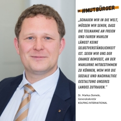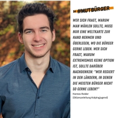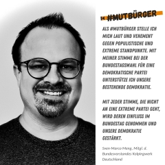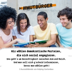 Zu diesem Zweck haben wir die Kampagne #mutbürger – die Kolping-Aktion für eine starke Demokratie ins Leben gerufen.