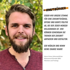 Demokratie ist ein „politisches Prinzip, nach dem das Volk durch freie Wahlen an der Machtausübung im Staat teilhat.“ So lautet eine gängige Definition. Teilhaben kann also nur, wer „mitmacht“. Wir können Politik und Zukunft nur gestalten, wenn wir mit unseren Stimmen ein starkes Mandat geben, also „mitmachen“ und damit „mutige Bürger:innen“ sind.