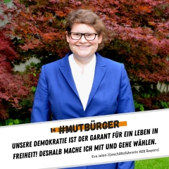 Ich bin #mutbürgerin für eine Demokratie, in der jeder und jede frei und friedlich leben kann! Mit meiner Stimme bei der Bundestagswahl 2021 möchte ich ein Zeichen setzen gegen Hass und Hetze, gegen Populismus und für ein geeintes und starkes Europa! Unsere Demokratie, unser Europa und unsere Erde braucht unsere Stimme für eine wunderbare Zukunft – ich gehe wählen!