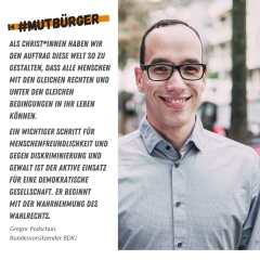 Es ist wichtig, wählen zu gehen, weil dadurch jeder einzelne Wahlberechtigte aktiv an der Demokratie und der damit regelmäßig neu verteilten politischen Macht mitwirkt. Jede Stimme zählt! Insbesondere junge Menschen – deshalb fordert der BDKJ seit Jahren die Senkung des Wahlalters – gestalten mit ihrer Wahl ihre Zukunft, weil die Politik heute über viele Themen von morgen entscheidet. So können wir gemeinsam für ein offenes und buntes Land ohne Menschenfeindlichkeit eintreten.